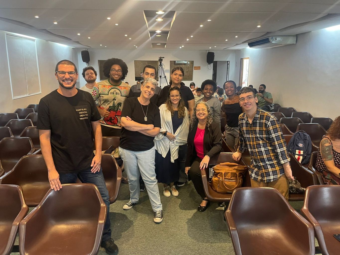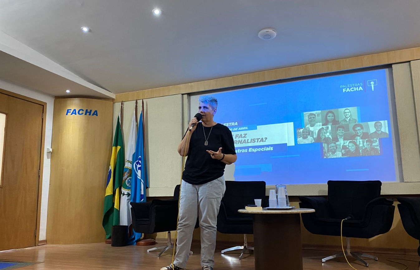Dando o pontapé inicial, os alunos ouviram sobre a diversidade no jornalismo com Dom Condeixa. Ele é um jornalista formado na FACHA em 1991, mestre pela Fundação Getúlio Vargas e doutor pela Fundação Oswaldo Cruz. Dom é uma pessoa transmasculina que, além de lecionar na Universidade Federal do Sul e Sudeste do Pará (Unifesspa), coordena núcleos de diversidade, equidade e se envolve em diversas questões sociais, tendo como prioridade a agenda LGBTQIA+.