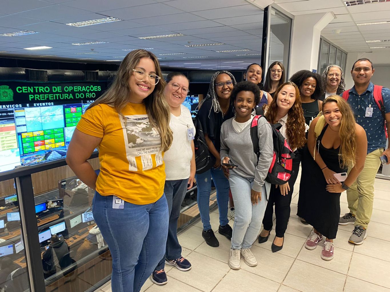 de Operações da Prefeitura do Rio de Janeiro (COR) no bairro Cidade Nova. Acompanhados da professora Ivana Gouveia e do Assessor de comunicações do COR, Thiago Feres, conheceram o trabalho dos profissionais que ali atuam, o espaço