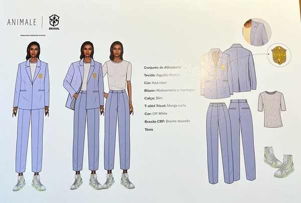 Animale, marca feminina famosa entre as mulheres, desenvolveu, junto às jogadoras uma roupa social azul clara para a viagem com destino a Austrália para a disputa do torneio mundial, que acontecerá também, na Nova Zelândia. A marca luta pela igualdade de gênero junto ao movimento ‘Elas lideram’ e esse convite para o desenvolvimento da roupa foi especial. O processo de criação foi acompanhado de perto pelo time. Algumas cores, modelos e estilos diferentes foram testados e opinados antes do resultado final. Do rosa bebê ao rosa choque, o time queria um look que as representasse como um todo, mais discreto. No final, a cor escolhida foi o azul claro.