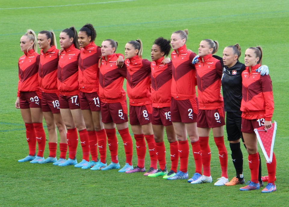 No meio-campo: Lia Wälti (Arsenal), Géraldine Reuteler (Eintracht Frankfurt), Coumba Sow (Servette), Sandrine Mauron (Servette), Seraina Plubel (Zurich), Marion Rey (Zurich) e Iman Beney (Young Boys).