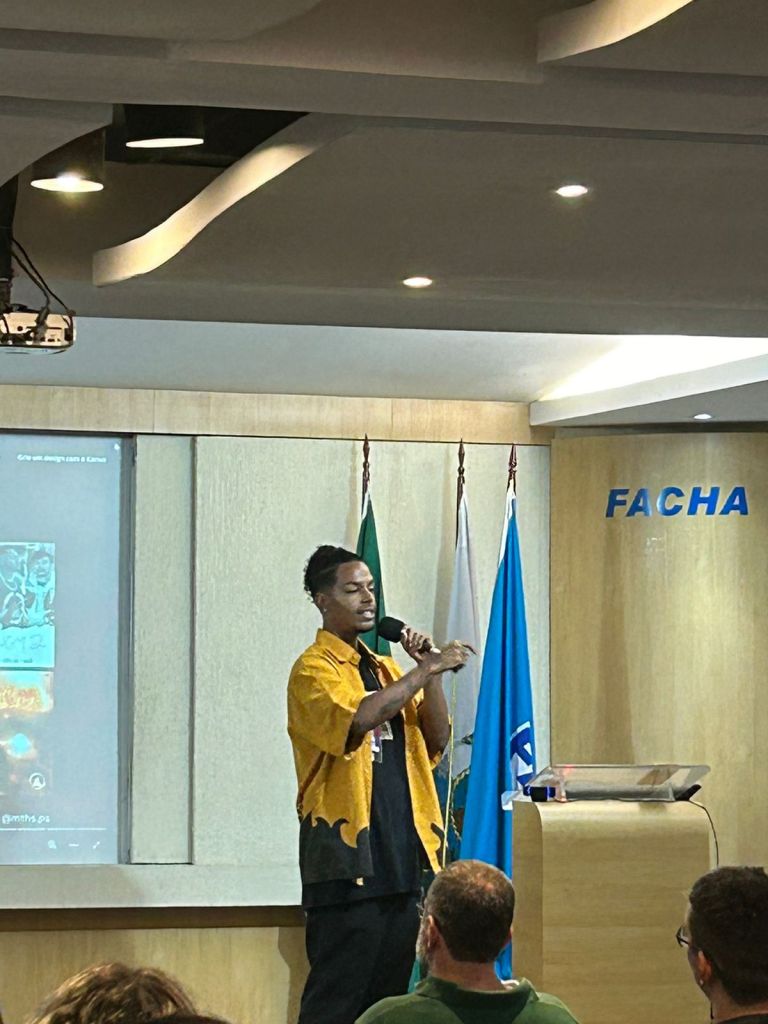 Para começar as palestras da terça-feira (10/10), o Facha festival recebeu em seu auditório, as 9h, a palestra “Rap & Design: Os Caminhos Do Design Gráfico No Mercado Do Rap Nacional” que já havia sido apresentada na faculdade no começo deste semestre.