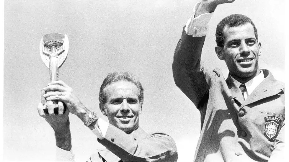 Imagem 2, Zagallo e Carlos Alberto Torres com a Jules Rimet. Divulgação: Luis Humberto-Revista Veja.