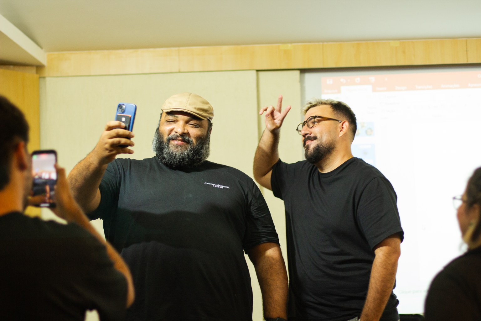 No final da palestra, já em tom descontraído eles contaram algumas histórias sobre as situações que já passaram junto a convidados, além de responderem a uma série de perguntas feitas pelos alunos. Algumas das dúvidas surgiram em saber como foi abandonar um emprego consolidado e começar do zero um projeto, Beto respondeu dizendo que não foi fácil lidar com as pessoas dando opinião, “todo mundo vai querer opinar, mas só você pode fazer o seu sonho dar certo”.