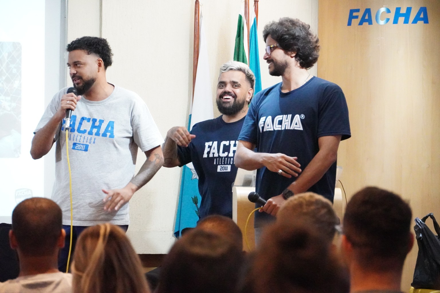 Na apresentação, um quiz sobre a trajetória da Facha Atlética foi realizado, nesse momento a interação começou a gerar empolgação nos calouros, que foram premiados com brindes, roupas e mochilas à medida que acertavam as perguntas realizadas.