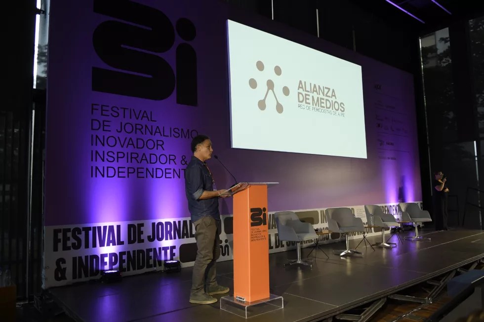 Rodrigo iniciou sua apresentação trazendo um conselho para jornalistas no evento: “É importante falar sobre nossas fontes e não ter medo de falar sobre nossos medos”. Ele deu como exemplo a cobertura via áudio da prisão de venezuelanos na fronteira com o México feita por jornalistas locais que fazem parte da aliança, e também citou outros temas que assolam o país, como o narcotráfico e a falta de transparência do governo.