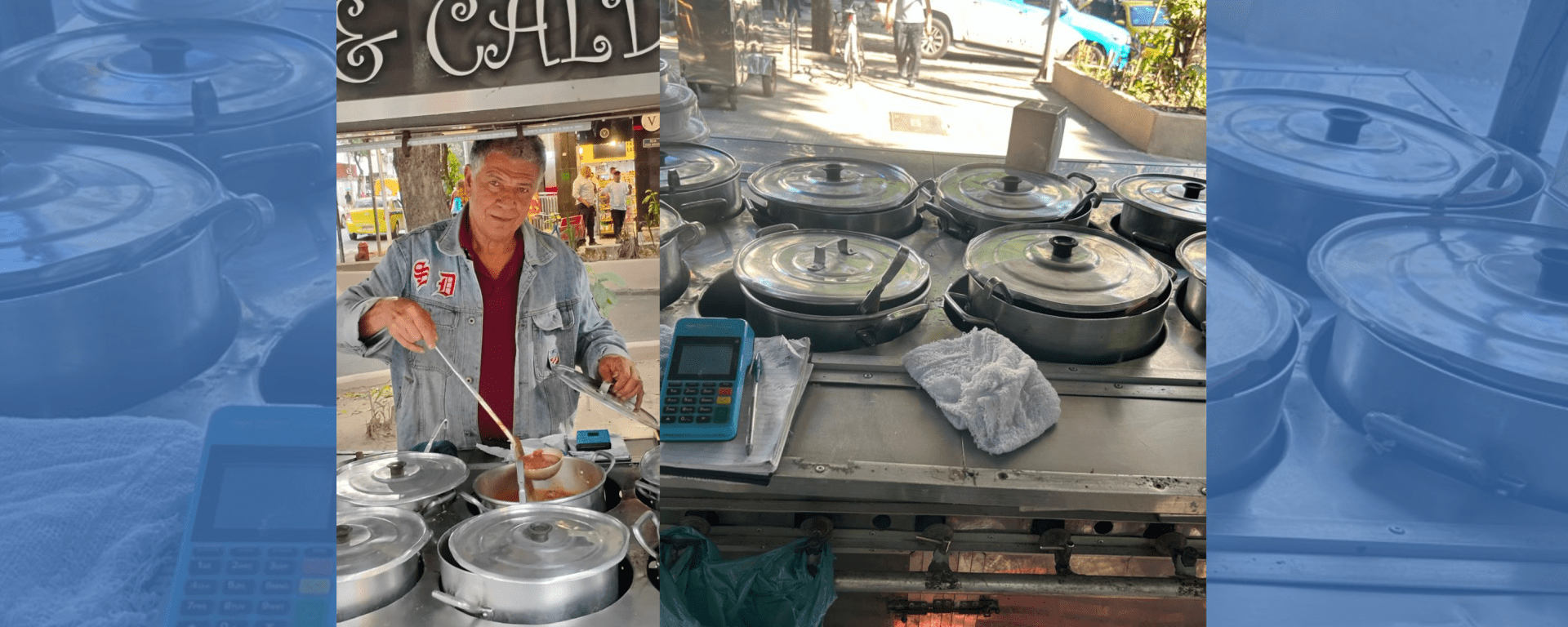 Carlos e Sônia têm um carrinho de vender caldos e estão há 20 anos no mesmo lugar. Frequento o local há aproximadamente 13 anos, desde quando tinha 7 ou 8 anos. Quase todo dia, entre 16h e 18h fazia a minha mãe me levar para comer sopa, até mesmo embaixo de chuva não muito forte. Já peguei a época que eles tinham motoboy para fazer entrega em casa e quando ele tinha uma loja de sopa na rua General Polidoro.