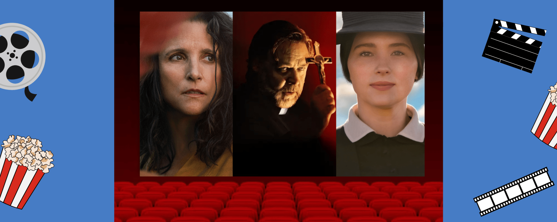 Foto Capa: “O Exorcismo” no meio (créditos: reprodução/cinemaeafins); “Tuesday: o último abraço” à esquerda (créditos: reprodução/parisfilmes); “A Viúva de Clicquot: A Mulher Que Formou um Império” à direita (créditos: reprodução/paisfilmes)