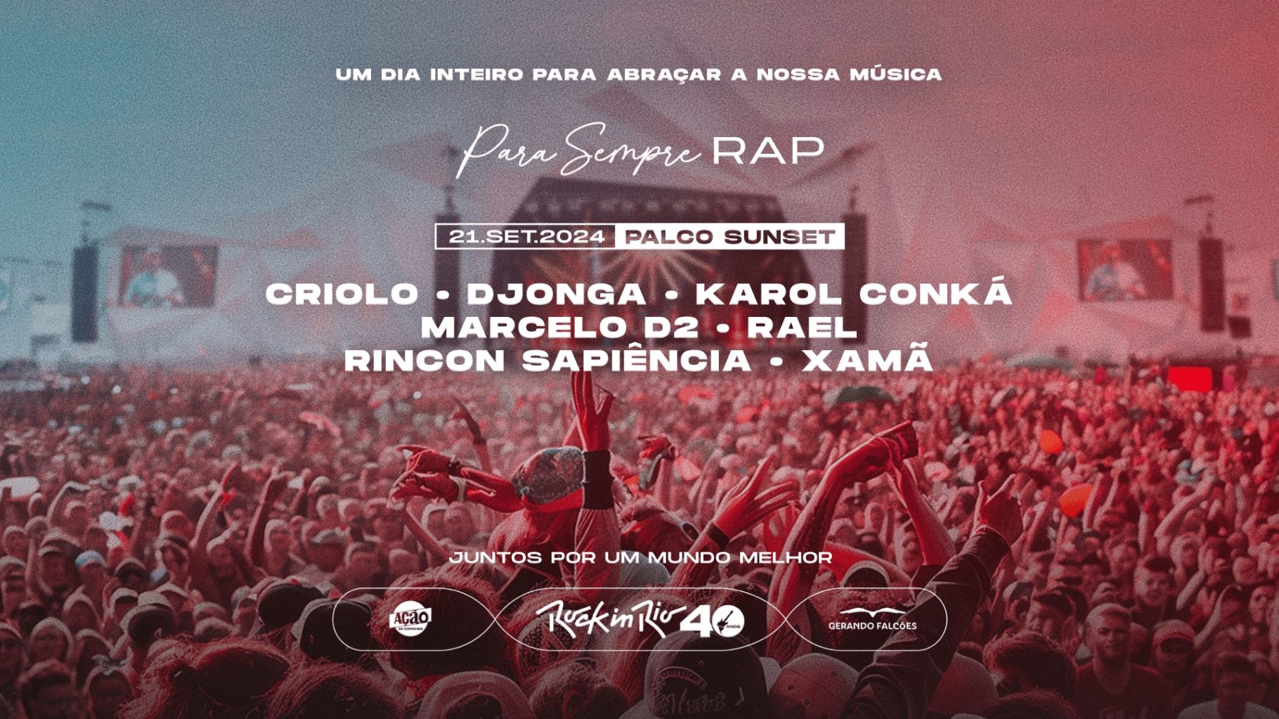 No palco Sunset, o gênero vai ser celebrado com a presença dos rappers Criolo, Djonga, Karol Conká, Marcelo D2, Rael, Rincon Sapiência e Xamã.