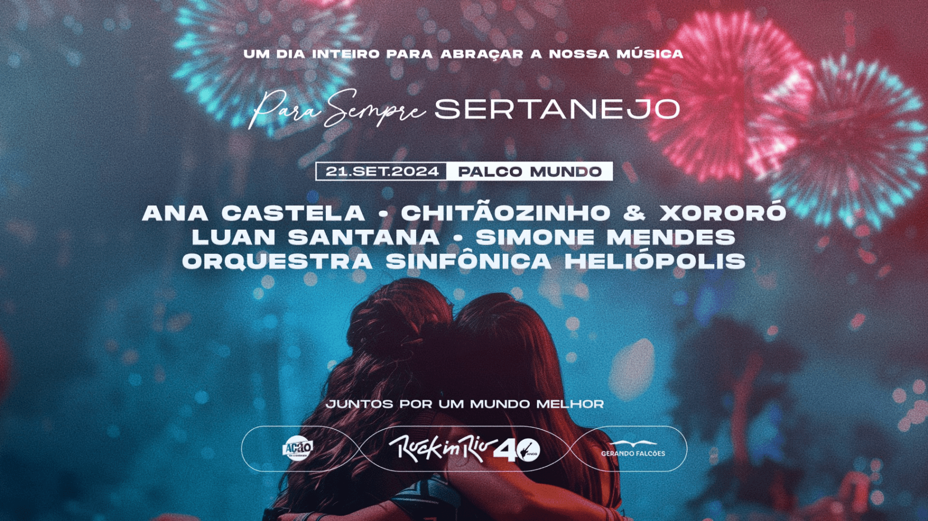 Pela primeira vez em 40 anos de história, o Rock In Rio abraça o estilo musical mais consumido pelos brasileiros atualmente: o sertanejo. Nomes como Chitãozinho e Xororó, Ana Castela, Junior, Luan Santana e Simone Mendes irão se juntar à Orquestra Sinfônica Heliópolis para contar a história do gênero musical que conquistou o país e que, a partir de agora, também passa a fazer parte da história de um dos maiores festivais de música do mundo.