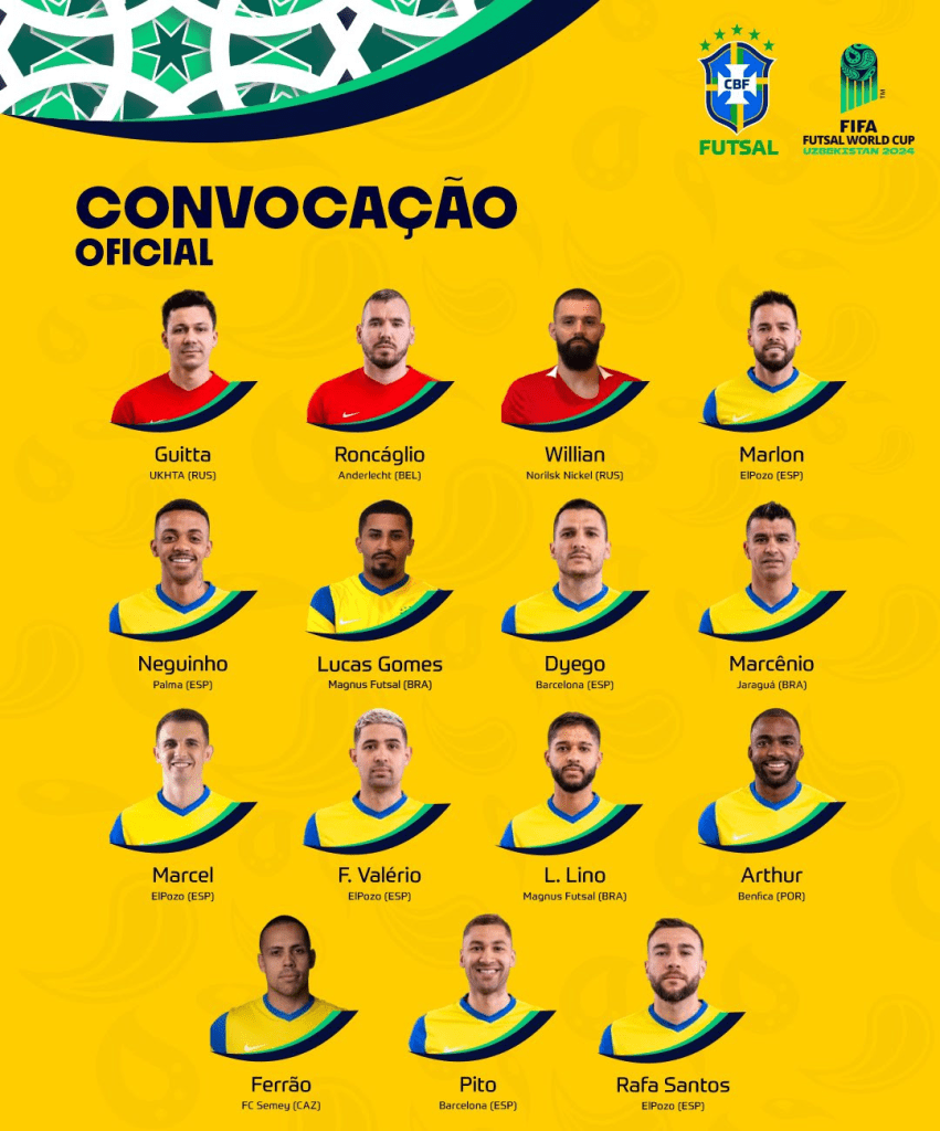 Outros destaques do Brasil são o goleiro Thiago Mendes, conhecido como “Guita”, que foi eleito o melhor goleiro do mundo na temporada de 2021, o pivô Ferrão, eleito melhor jogador do mundo em 2019, 2020 e 2021 e o ala Leandro Lino, um dos maiores campeões em atividade no Brasil, com duas Libertadores, duas Ligas Nacionais de Futsal, duas Supercopas Brasil de Futsal, dois Mundiais de Clubes e uma Copa América e um Grand Prix pela seleção.