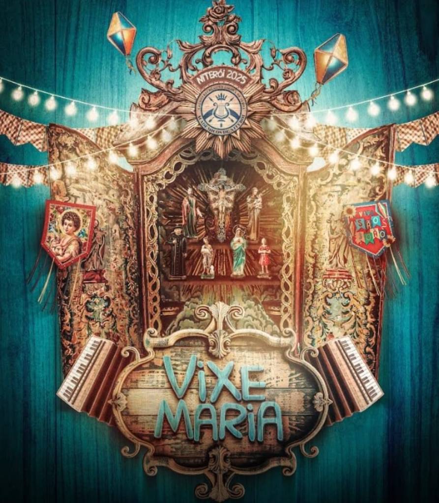 Quem disse que Festa Junina é apenas em junho e no Nordeste? Para Tiago Martins, carnavalesco da caçula da cidade sorriso, o enredo “Vixe Maria” fará a marquês de Sapucaí virar um verdadeiro quadrilheiro, desembarcando em Maracanaú, cidade no Ceará onde é feito um dos maiores São João do mundo, que foi homenageado pela Acadêmicos de Vigário Geral em 2024. A Niterói levará das festanças nos salões europeus, até a transformação em cortejo religioso no Brasil.