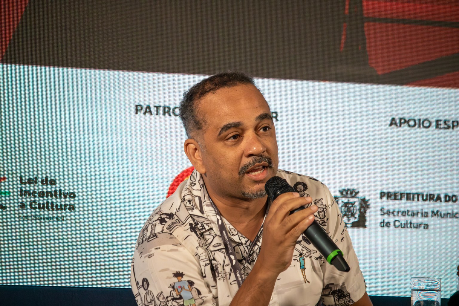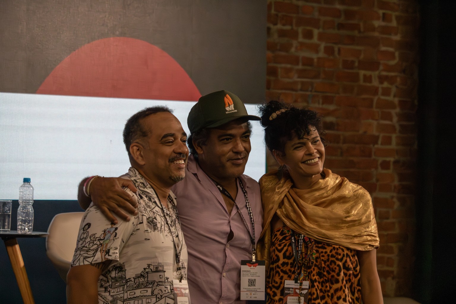 A mesa da palestra composta por Luciano Vidigal, Luciana Bezerra e Marcello Melo, frutos desse trabalho que segue mudando vidas, compartilharam um pouco de suas trajetórias. O grupo mudou não apenas suas vidas, mas a de suas famílias, além da autoestima da comunidade.