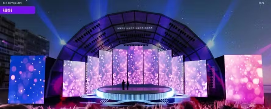 A festa em Copacabana vai contar com três palcos, são eles: palco Rio, palco Samba e palco Leme. Enquanto o palco Samba vai receber apenas artistas relacionados ao gênero, o palco Leme será exclusivamente de nomes da música Gospel. O maior palco, no entanto, será o “palco Rio”, que mesclará nomes do pop, do axé e da música eletrônica e será montado em frente ao hotel Copacabana Palace, no mesmo local onde foi montado o palco para o show de Madonna, em maio. Veja quais serão as atrações em cada um deles:
