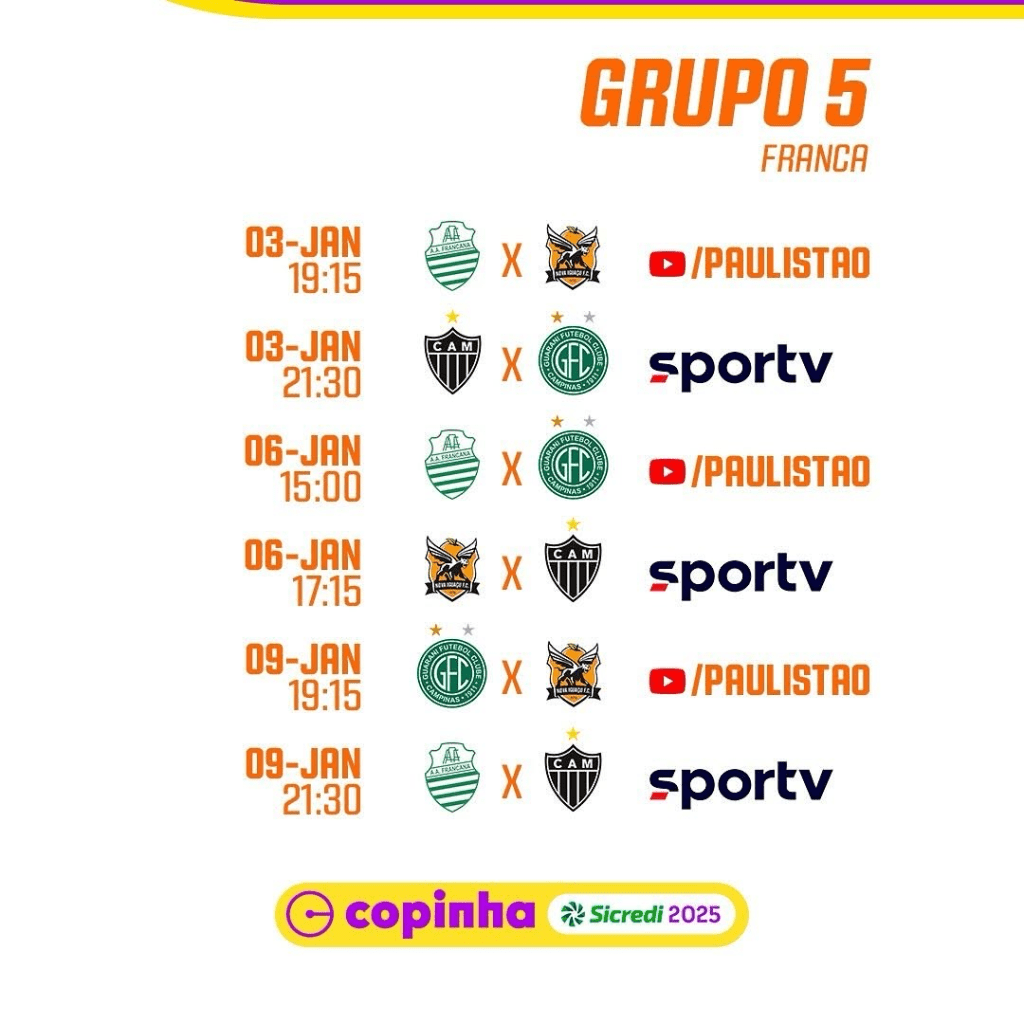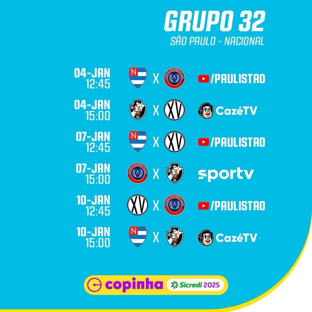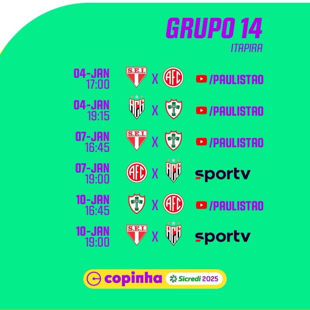 No grupo 20, o Boavista enfrenta o Cascavel-PR, o Referência-SP e o Sport-RE. O time, que não competia desde 2019, viaja com força máxima. Com a chegada da SAF recentemente, o clube está investindo ainda mais em infraestrutura. O técnico Leandro Miranda, que retornou ao Verdão de Saquarema neste ano, acredita que as novas transformações podem ajudar o desempenho da equipe na Copinha.