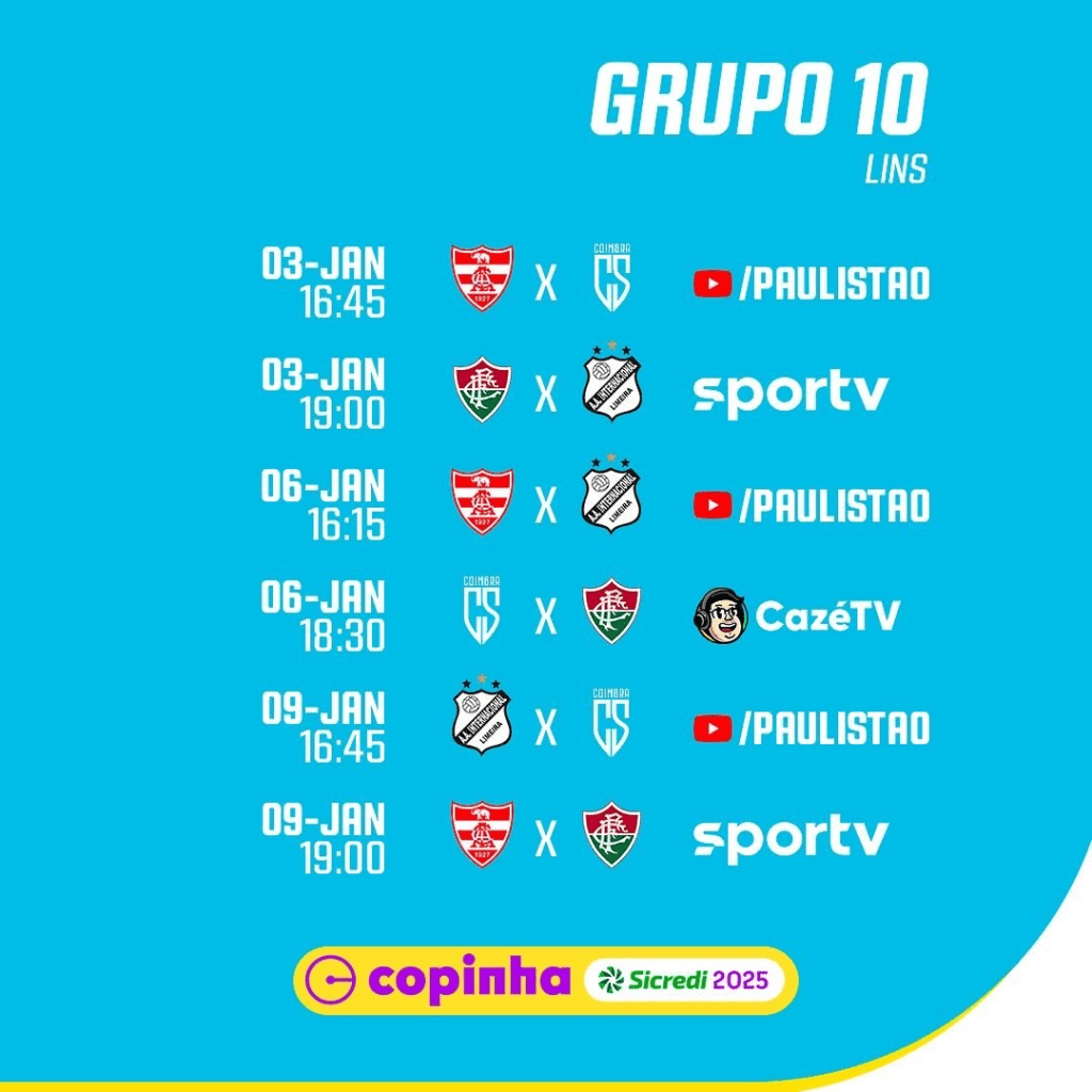 “Sabemos da importância da Copinha não só para o desenvolvimento técnico dos jogadores, mas também para seu amadurecimento mental. Nossa preparação inclui trabalhos voltados tanto ao aspecto tático quanto psicológico. Buscamos lembrar aos atletas a relevância do torneio e como pode ser um trampolim para sua carreira, mas sempre com foco na construção de um futebol sólido e equilibrado, independentemente das adversidades”.