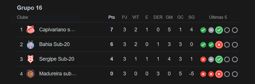 Com o término da primeira fase, a configuração do grupo ficou da seguinte forma: