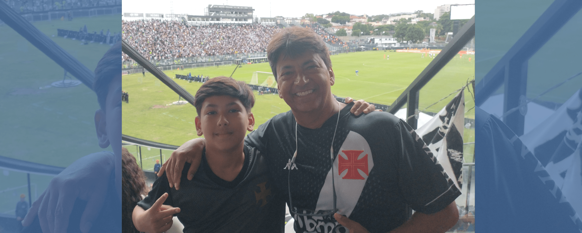 Um desses casos que chama a atenção e remete à famosa frase do presidente vascaíno Cyro Aranha (“Enquanto houver um coração infantil, o Vasco será imortal”), aconteceu no último sábado (11) quando Marcos Dumit e Lucas Dumit, pai e filho, que moram em Maceió, puderam pela primeira vez assistir ao clube do coração em seu estádio, no empate por 1×1 diante do Nova Iguaçu.