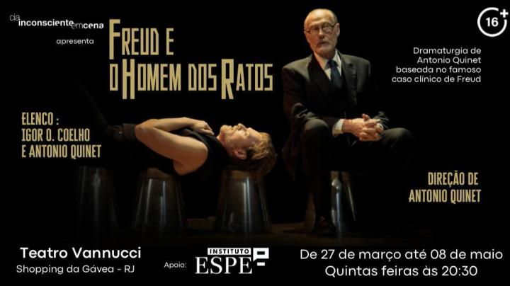 O espetáculo “Freud e o Homem dos Ratos” traz aos palcos o famoso caso de neurose obsessiva apresentado por Sigmund Freud no Primeiro Congresso de Psicanálise em Salzburg, em 1908. A trama acompanha um homem de 30 anos que enfrenta pensamentos obsessivos relacionados a uma tortura envolvendo ratos, rituais de proteção contra pensamentos hostis e uma série de dúvidas, sendo a maior delas a decisão sobre com quem se casar: com a mulher que ama, mas é rejeitada pela família, ou com a prima rica, que lhe daria a chance de herdar e administrar os negócios familiares. Além disso, ele possui uma relação complexa com seu pai, um homem jogador, libertino e cruel, por quem sente tanto ódio quanto temor, mas também um amor contraditório. Seus sintomas e angústias o tornaram incapaz de trabalhar e de se relacionar afetivamente.
