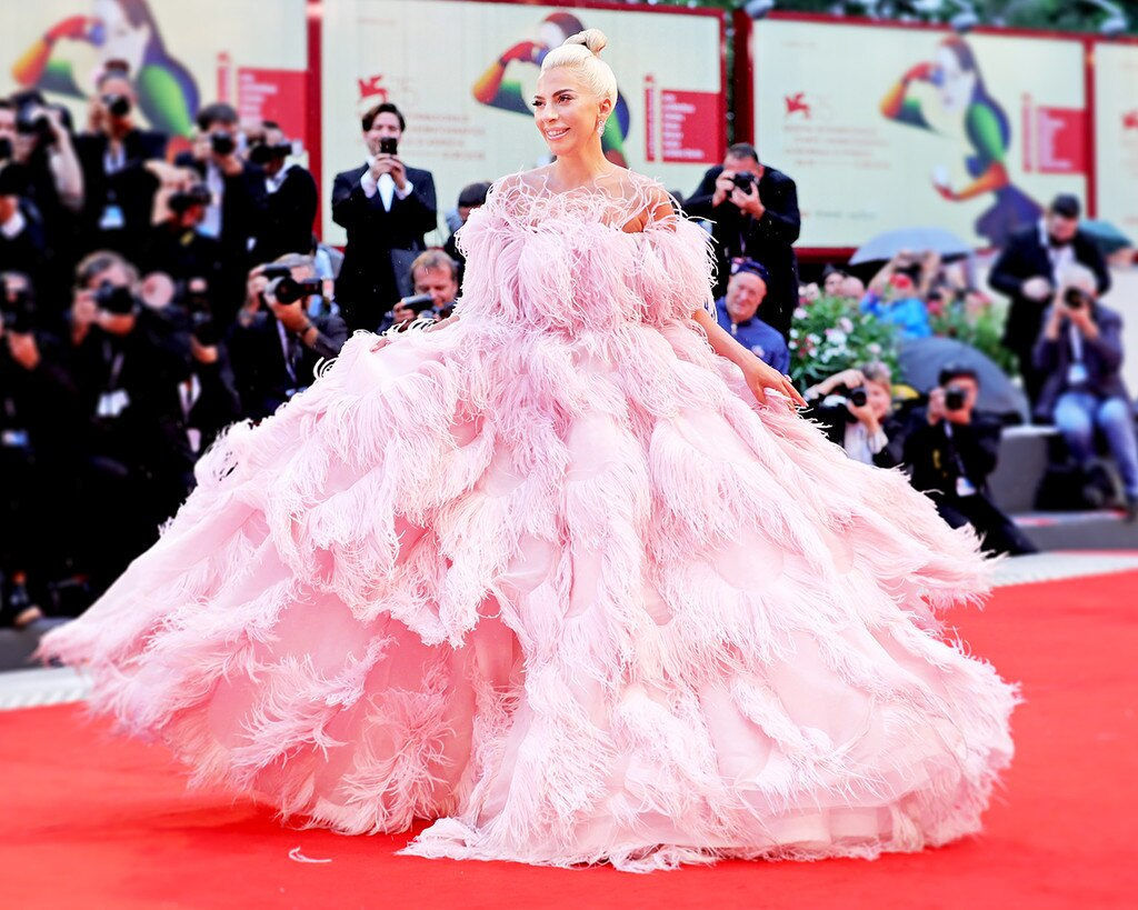 Inegavelmente um de seus maiores destaques no mundo da moda, em seus Red Carpet no mundo do cinema, foi o Valentino de plumas usado no Festival de Veneza em 2018