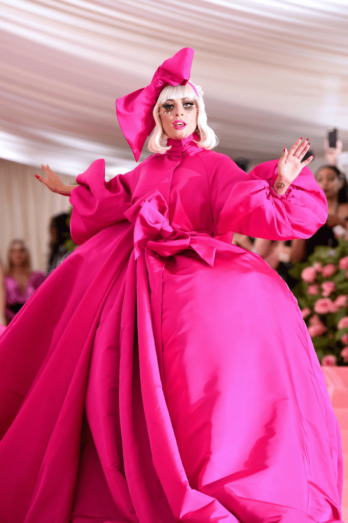 A cantora de Born This Way, entrou ao lado de cinco dançarinos vestindo um volumoso vestido rosa fúcsia de Brandon Maxwell. Enquanto os dançarinos giravam ao seu redor empunhando guardas chuvas como adereço, a segunda troca de roupa acontecia com o próprio designer abrindo o zíper do vestido de Gaga, revelando um grande vestido de baile preto por baixo.
