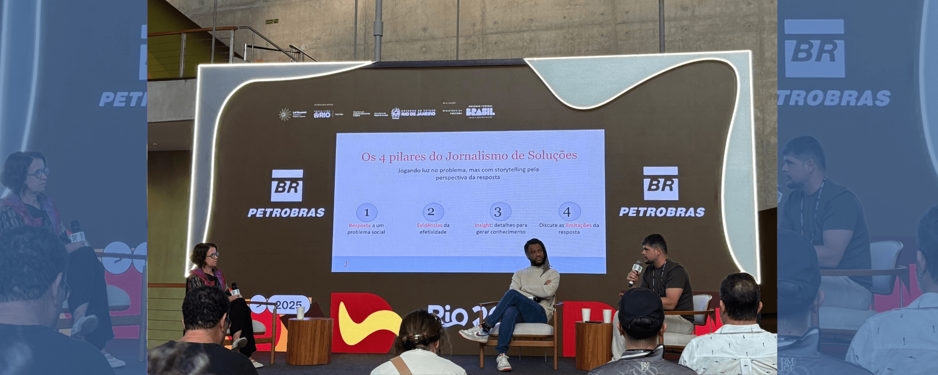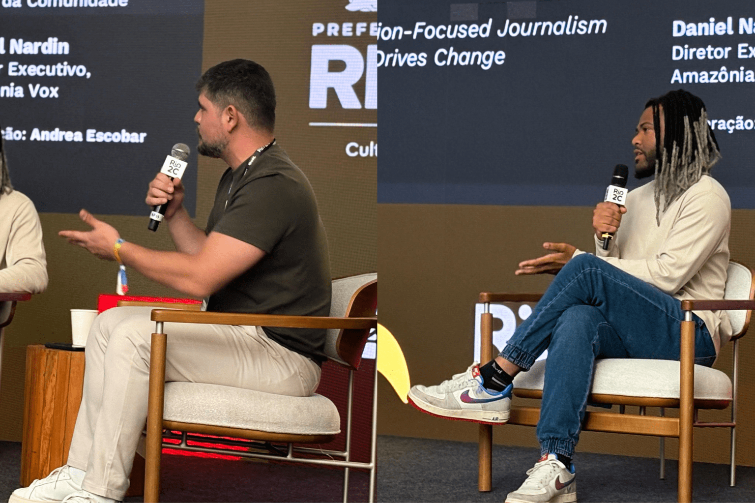 Abrindo espaço para o debate sobre o jornalismo de soluções, a Writers Room do Rio2C recebeu Renê Silva, fundador do Voz das Comunidades, e Davi Nardin, Diretor Executivo do Amazônia Vox. Mediada por Andrea Escobar, chefe de conteúdo e produção da GloboNews, os palestrantes passaram sobre temas como futuro do jornalismo, dar voz a histórias pouco exploradas e conquista de comunidades desprivilegiadas por veículos convencionais de informação.
