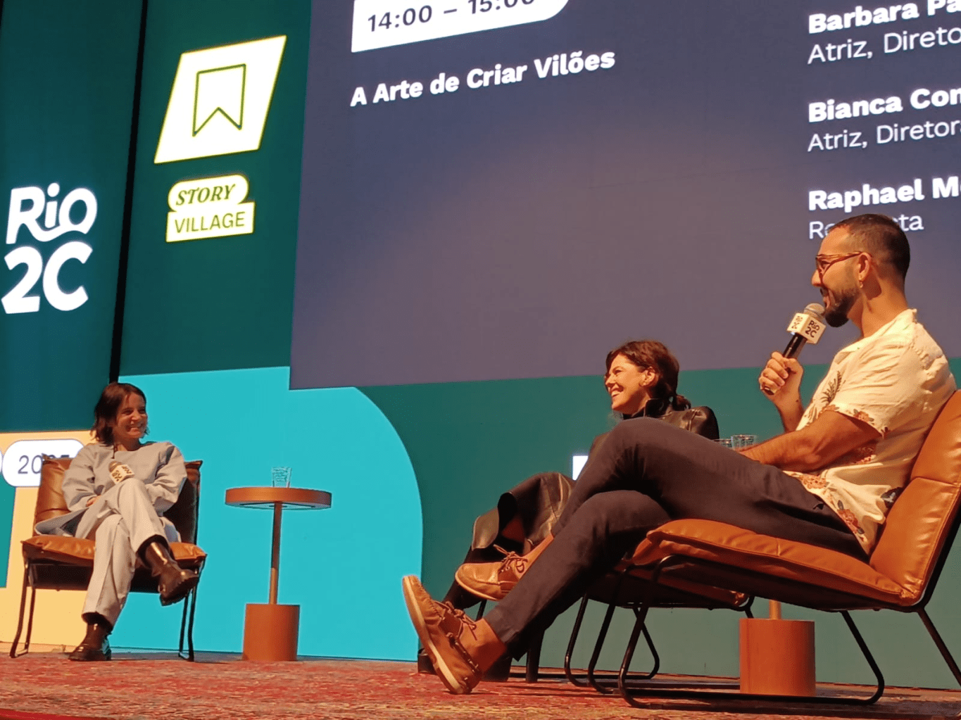 O último dia do Rio2C 2025, o maior encontro de conexão, criatividade e inovação da América Latina, foi marcado por palestras repletas de conteúdo e aprendizado no palco Story Village. A terceira palestra, intitulada “A arte de criar vilões”, reuniu as atrizes e diretoras Barbara Paz e Bianca Comparato, além do escritor e roteirista Raphael Montes. Durante a conversa, Raphael falou sobre sua novela Beleza Fatal e detalhou o processo de criação da vilã Lola, interpretada por Camila Pitanga, que viralizou nas redes sociais por seu estilo e pelas frases marcantes da personagem. Barbara Paz também comentou sobre a construção de duas de suas personagens, Edith e Úrsula, e como foi a recepção do público.