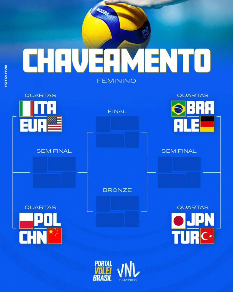 A Seleção Brasileira Feminina de Vôlei irá enfrentar a Alemanha nas quartas de final da Liga das Nações (VNL). O confronto foi definido após o encerramento da fase classificatória no último domingo, na etapa do Japão.