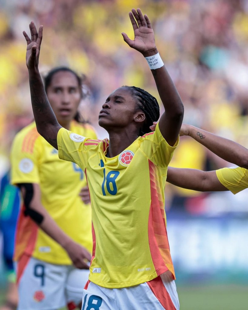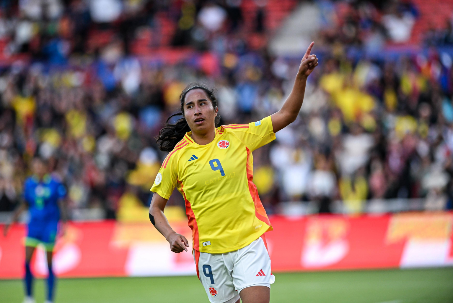 Leicy Santos comemora o 4º gol da Colômbia. Foto: Conmebol