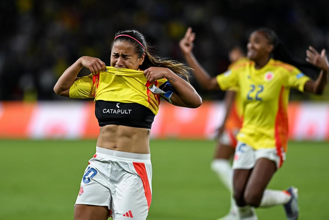 Linda Caicedo comemora o 1º gol colombiano. Foto: Conmebol.