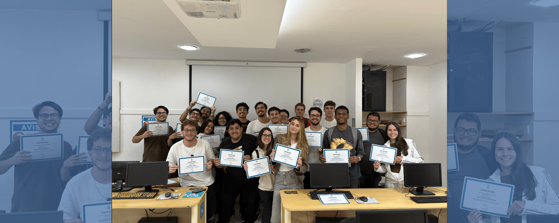 Na segunda (18/08), a Facha teve a aula inédita de “Oficina de texto em reportagem esportiva”, orientada por Rafael Bizarelo e Luiz Gontijo no Centro de Produção e Pesquisa. O curso contou com dicas, instruções e serviu para alinhar a escrita dos alunos com os atuais modelos de redação dos grandes veículos.