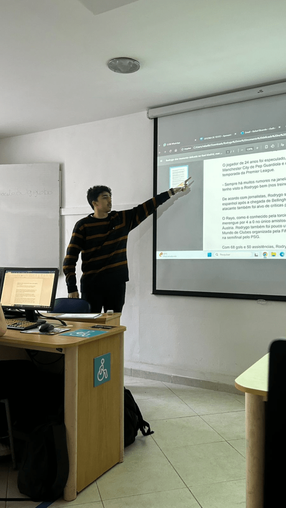 Um ponto importante explicado durante a aula, foi a questão da criatividade ao escrever. O porquê de desenvolver aquela determinada notícia, além de ser objetivo no texto, “seja criativo na sua escrita, chame a atenção do leitor. Ninguém vai ficar lendo um texto de vários parágrafos”, abordou Rafael sobre a produção de textos.