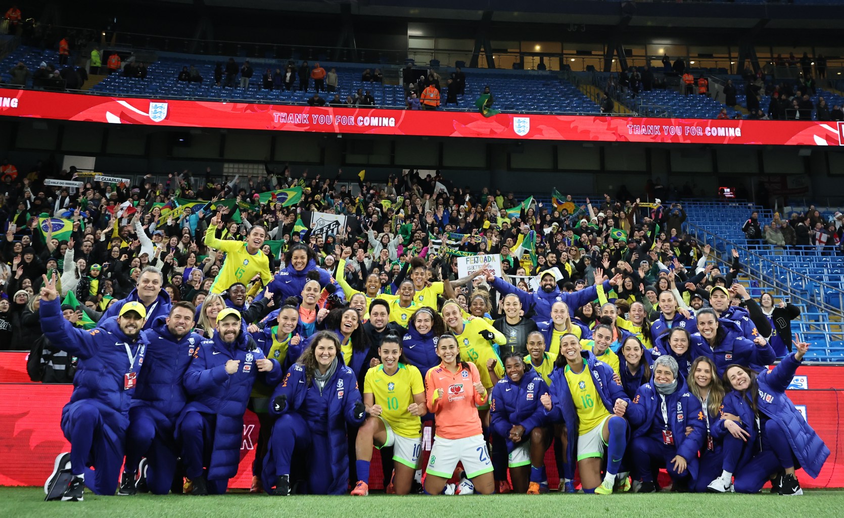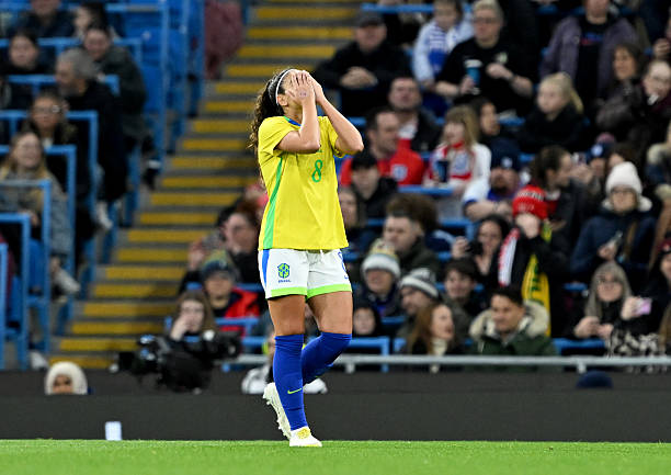 No fim, o Brasil resistiu à pressão inglesa e garantiu a vitória por 2 a 1, mesmo com uma jogadora a menos em campo por cerca de 70 minutos, comemorando assim um triunfo vibrante e marcante sobre a Inglaterra.