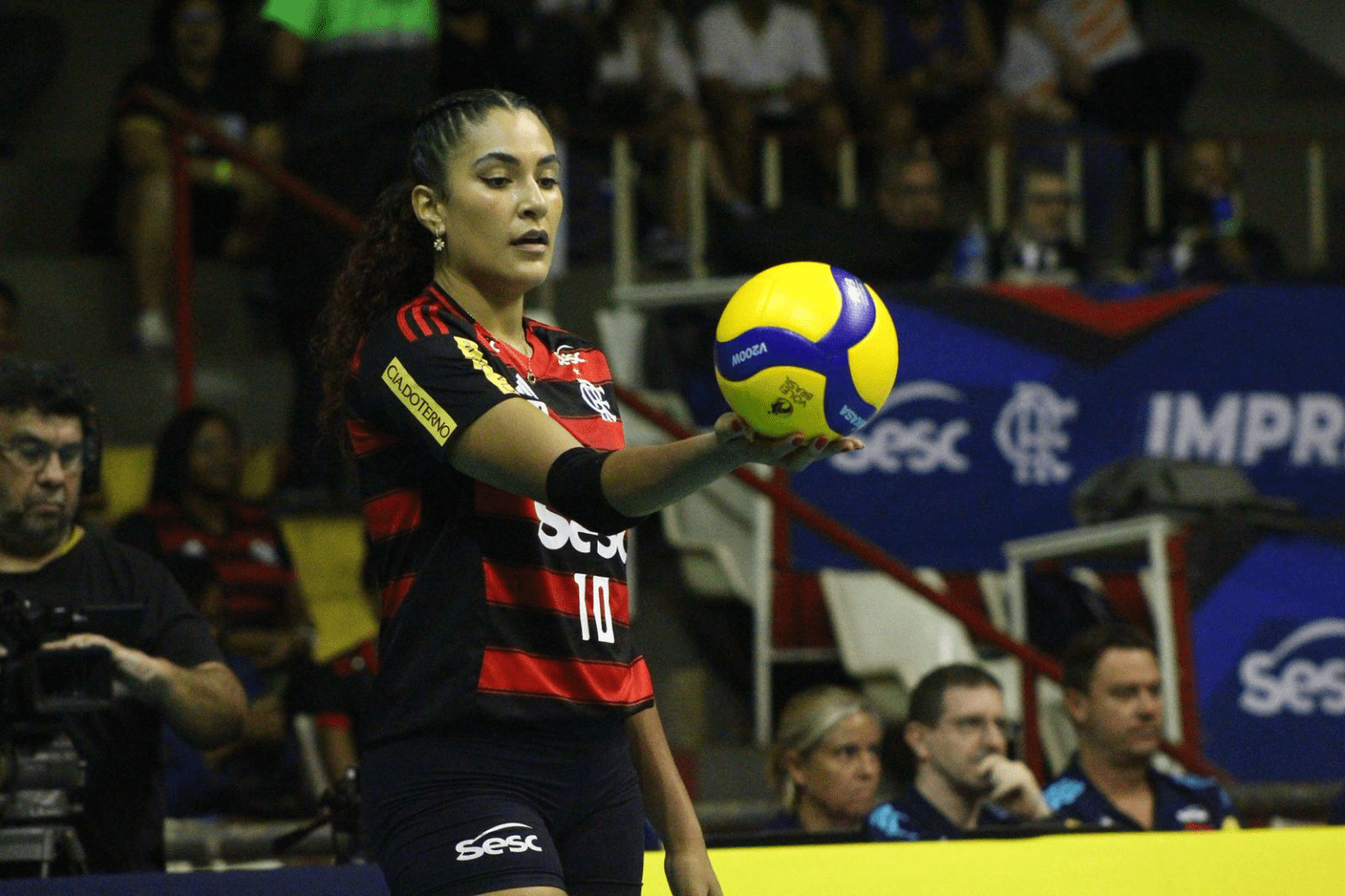 Mas não foi apenas a oposta, camisa 10 do Sesc Flamengo, que brilhou no primeiro set. A central Juju tomou conta da defesa, o que resultou em pontos de bloqueio repetidamente.