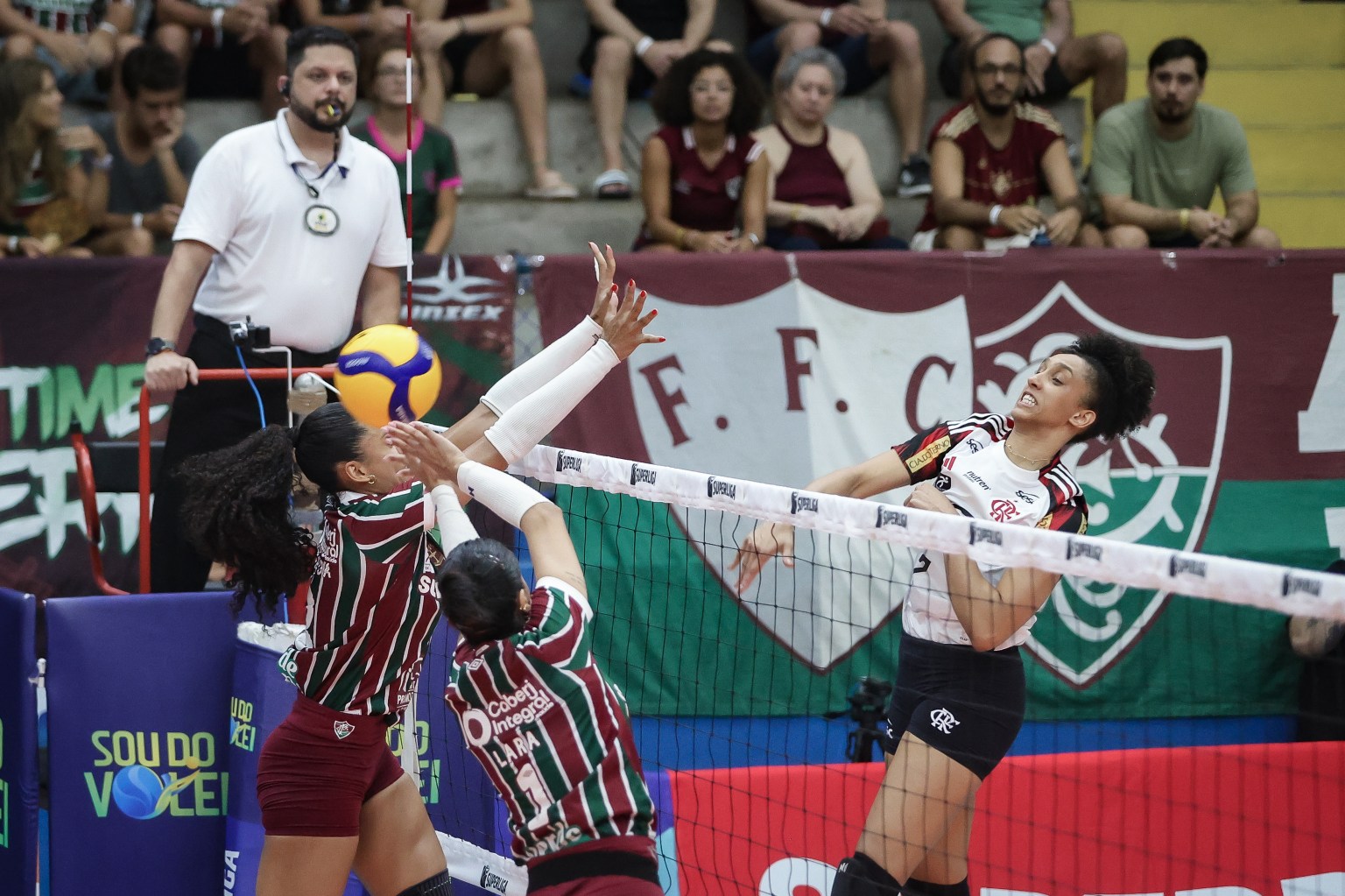 O terceiro set começou equilibrado, com o Flamengo assumindo a dianteira, mas encontrando um Fluminense disposto a não deixar a diferença abrir. As rubro-negras chegaram a fazer 3 a 1 após um bloqueio de Tainara, porém Camila Paracatu manteve as anfitriãs vivas no jogo com ataques precisos pela direita. A sequência de erros e acertos dos dois lados manteve o placar oscilando, e o empate em 6 a 6 mostrou o equilíbrio do momento. Karina e Simone Lee tentaram recolocar o Flamengo no controle, mas o Fluminense respondeu com Valdez e Lara, que ajudaram a virar para 10 a 9 depois de um rally intenso. A partida seguiu ponto a ponto, com mudanças constantes na liderança até que Juju bloqueou Valdez e abriu 14 a 12 para o Flamengo, forçando Marcos Miranda a pedir tempo. Na volta, o Fluminense se recompôs, aproveitou dois toques das adversárias e, após erros de Tainara, empatou em 14 a 14. Valdez então fechou a boa reação tricolor com um bloqueio decisivo para virar em 15 a 14, obrigando Bernardinho a parar o jogo.