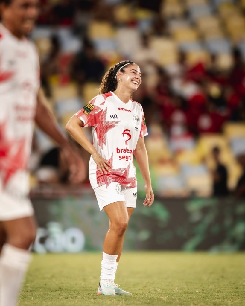 As atletas entraram durante o 2º tempo, com Luany entrando no time vermelho e Angelina entrando no time branco e ambas jogadoras vestindo a camisa 33 de cada equipe. Enquanto Angelina buscou construir algumas jogadas para o time branco através de passes e arrancadas, Luany atuou no ataque do time vermelho buscando entrar na área adversária com jogadas de efeito para cima da marcação. A atacante teve um gol anulado por impedimento e deu a assistência para o gol de Thiago Coimbra, um dos filhos de Zico.