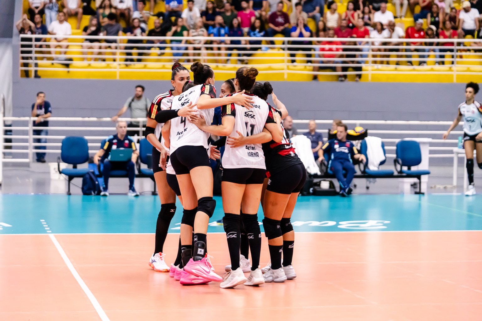 Na retomada do jogo, o Flamengo manteve o domínio absoluto do segundo set e rapidamente voltou a ampliar a vantagem, com Giovana anotando mais um ace logo de cara. Mesmo com um ou outro erro pontual que permitiu ao Paulistano Barueri encostar no placar, a equipe carioca seguiu superior, aproveitando falhas na recepção adversária e a eficiência ofensiva de Tainara, que foi acionada com frequência por Giovana. Simone Lee, Lorena e Karina também apareceram em momentos decisivos, seja no ataque, no bloqueio ou no saque, deixando pouca margem para reação do Barueri. O time paulista ainda buscou diminuir a diferença com pontos de Sabrina e Jheovana, mas o ritmo rubro-negro foi constante até Simone Lee fechar a parcial em 25 a 15, consolidando mais um set controlado pelo Flamengo.