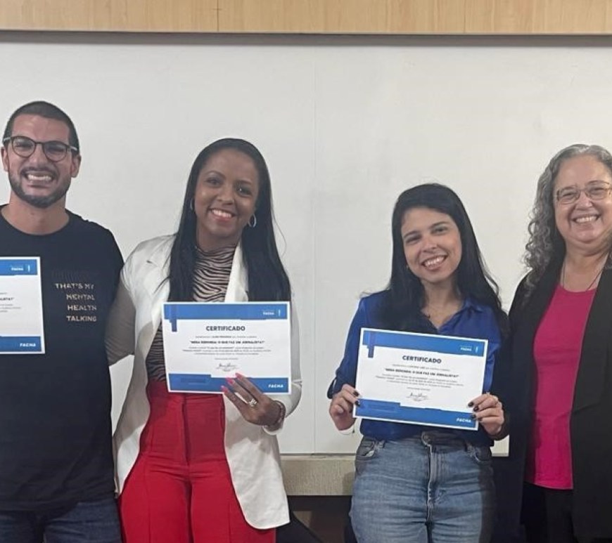 Na segunda-feira, dia 10/04, a FACHA recebeu três alunos formados pela FACHA em Jornalismo, que atualmente representam a faculdade no mercado de trabalho, para falar sobre as suas respectivas trajetórias na faculdade, como almejar a área desejada dentro da carreira e como aproveitar oportunidades de estágio e se destacar no meio acadêmico Continuar lendo Formados na FACHA retornam para palestra do dia do jornalista